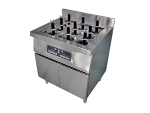 全自动电脑版豪华九头煮面机特点:从煮面到水洗冷却的生产过程均在密封舱内进行,避免面条受细菌污染;
